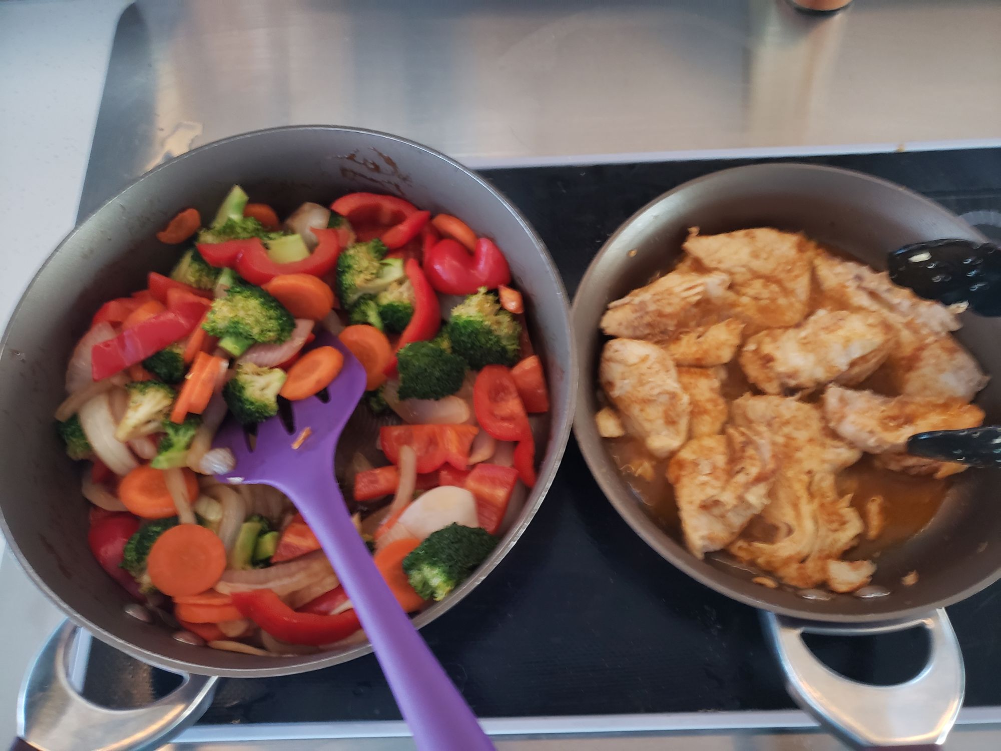 Dinner was blackened mahi with stir fried veggies and mashed potatoes. Yum!