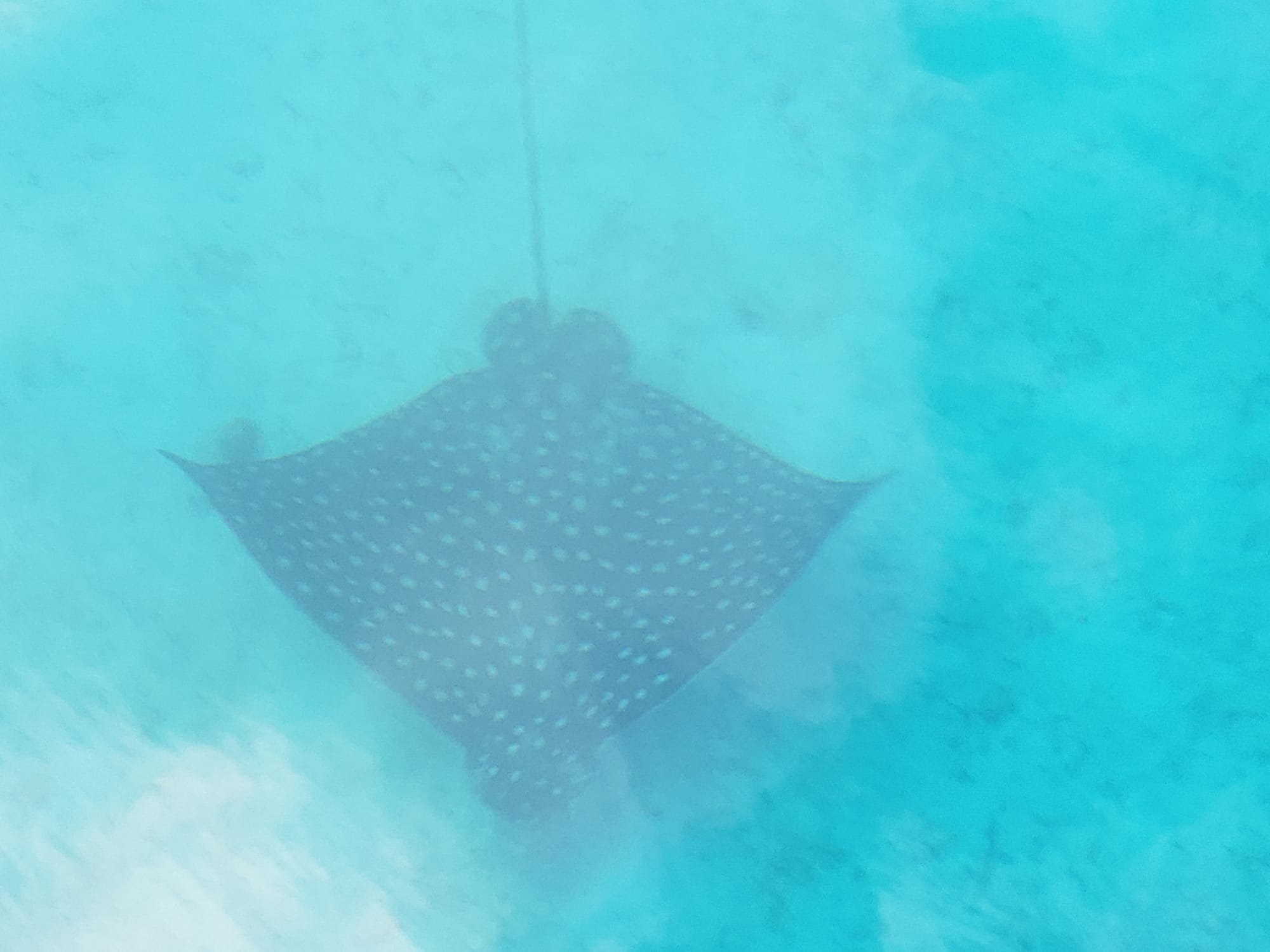 And hoo boy is it worth it! We went snorkeling, saw turtles, a stingray, an eagle ray, lots of cool fish, lots of urchins, an anemone, mostly rocks and sand, with some coral. And clear clear water...