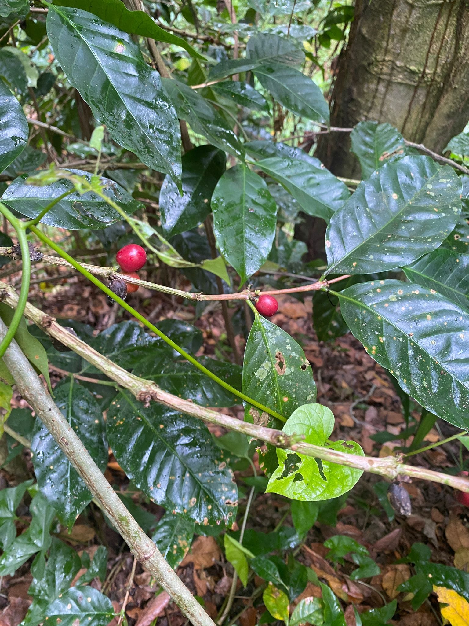 There are lots of coffee plants here, thousands of them. Ilya couldn't resist harvesting a few.